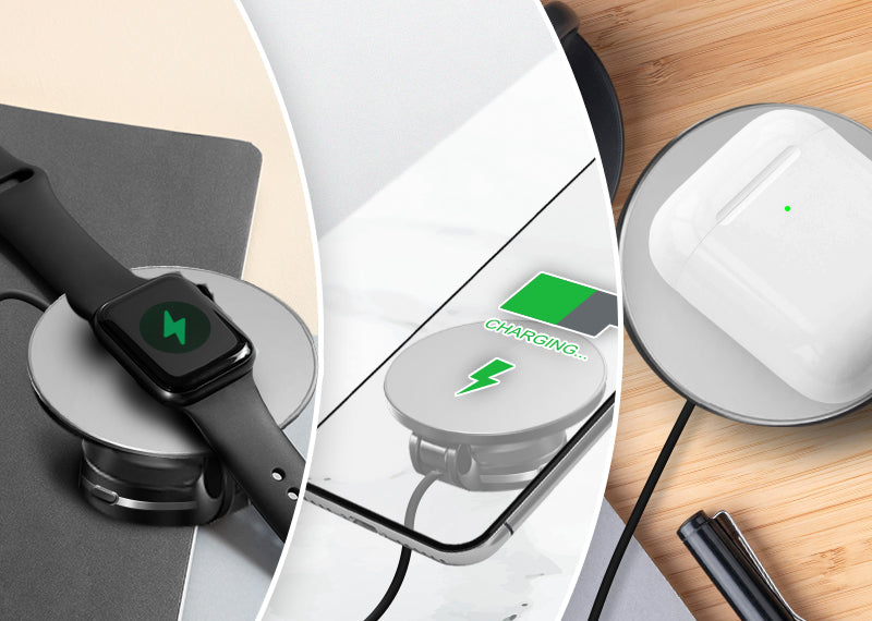 15W大功率兩用無線充電線圈,不論是手機、Apple Watch或Airpods皆可無線充電。