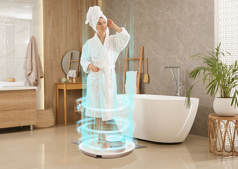 免彎腰,站上用腳輕觸就能控制,暖風溫度達40度,暖而不燙。