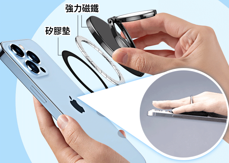 magsafe強力磁鐵加強吸附在手機背面,搭配獨家吸盤可任意吸附在各種牆面,支撐同時無線充電怎麼吸都不會掉!