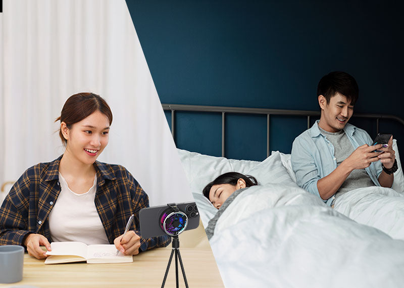 同步為手機降溫和充電,確保手機順暢運行。無線充電功能也可以單獨使用,並且還能作為手機支架使用。