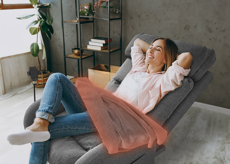 可拆式加熱毯提供熱敷功能,能幫助生理期緩解疼痛、墊於背後舒緩腰背不適,即使舒服到睡著也不怕會著涼!